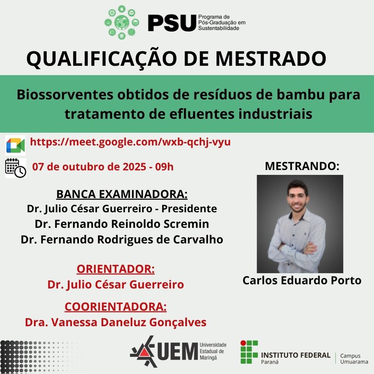 07/10/2025 - QUALIFICAÇÃO - Mestrando: Carlos Eduardo Porto - Orientador: Dr. Julio Cesar Guerreiro
