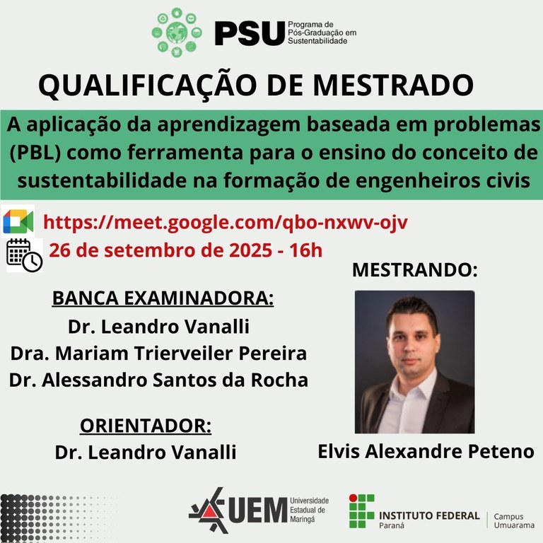 26/09/2025 - QUALIFICAÇÃO - Mestrando: Elvis Alexandre Peteno - Orientador : Prof. Dr.Leandro Vanalli